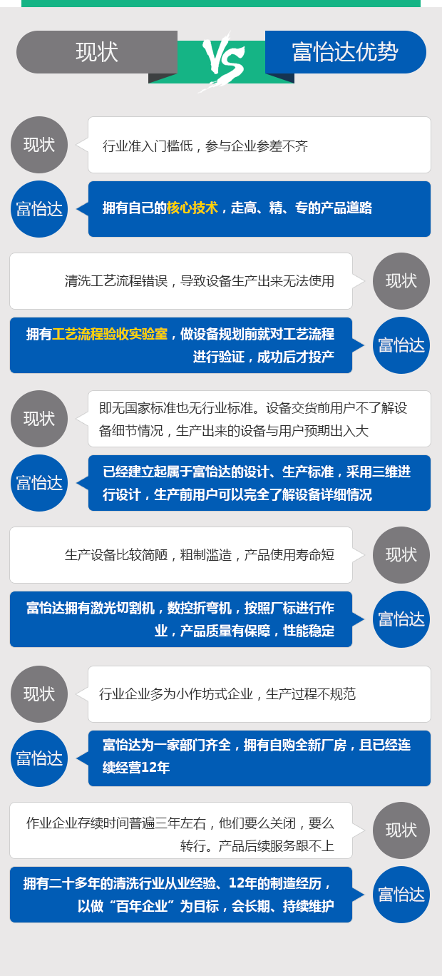 清洗行業(yè)均為行業(yè)專用設備,目前即無國家標準,也沒有形成行業(yè)標準,所以設備是各取所長,富一達的自動超聲波清洗機,通過式超聲波噴淋清洗機、往復式旋轉噴淋清洗機,渦旋式清洗機均按富怡達廠標標準進行設計、制作。